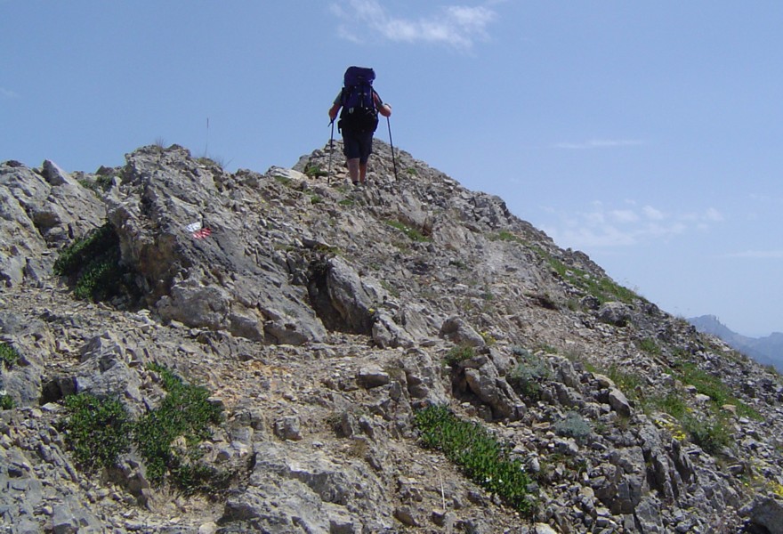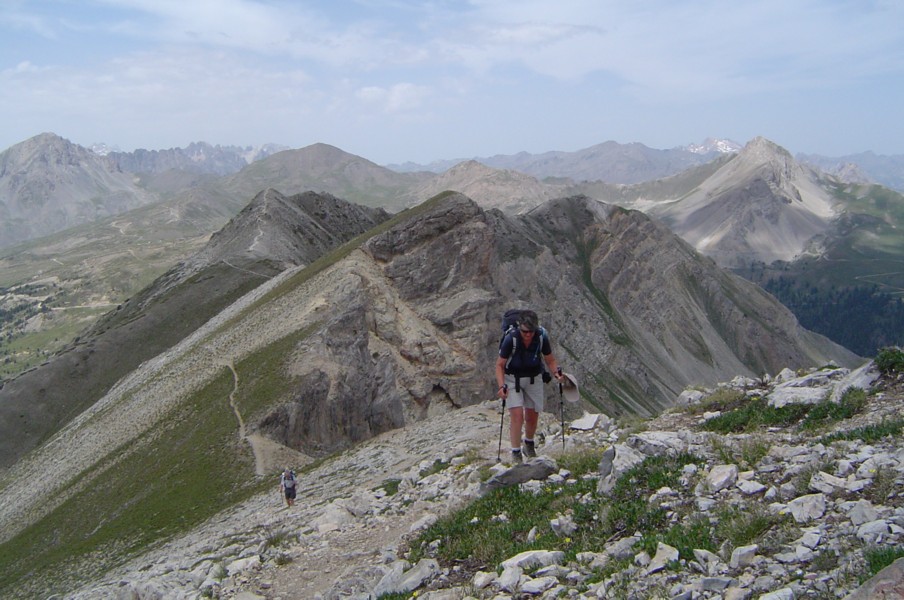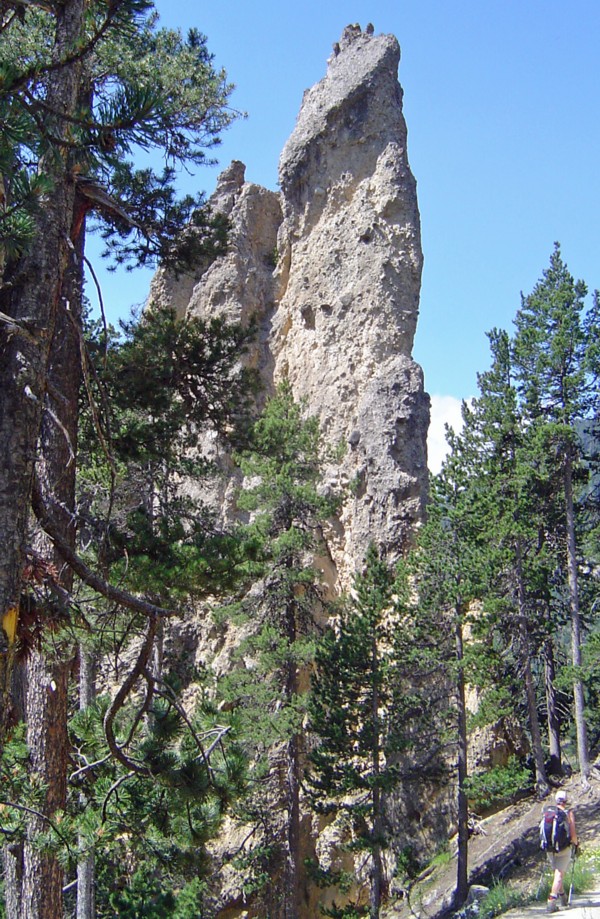 Top row L>R - I Re Magi ( the 3 Kings ) : sandstone pillar near Névache : Sue + Pete on Crête de Peyrolle : Ivan near top of Crête de Peyrolle : looking down on Briançon
