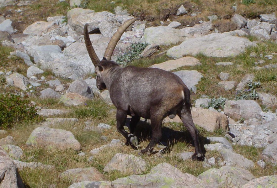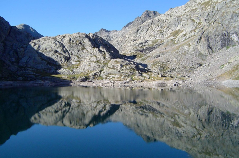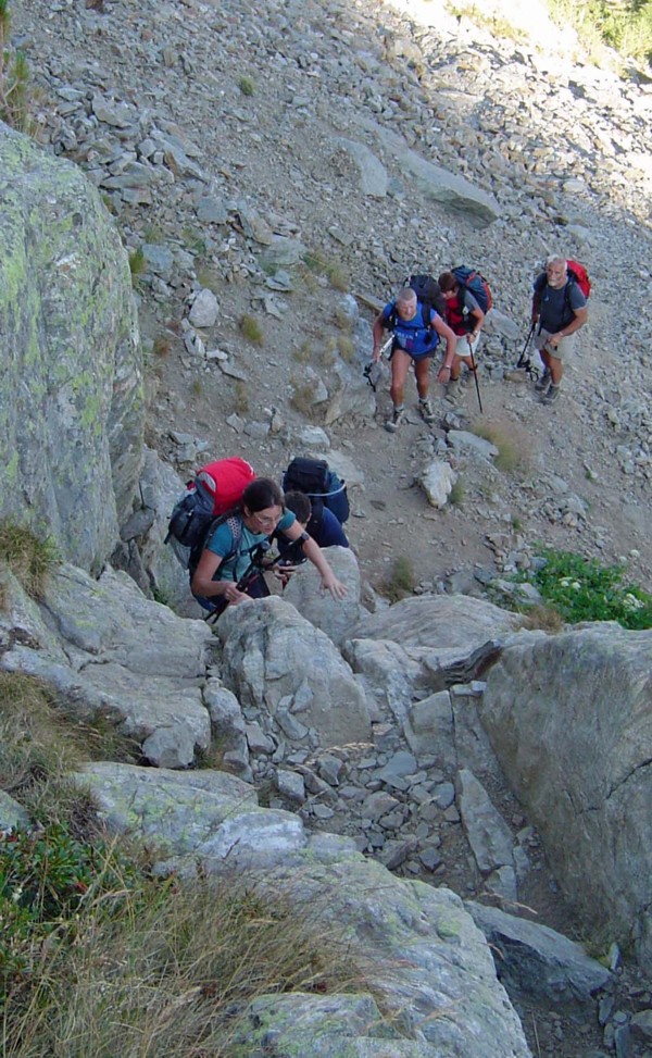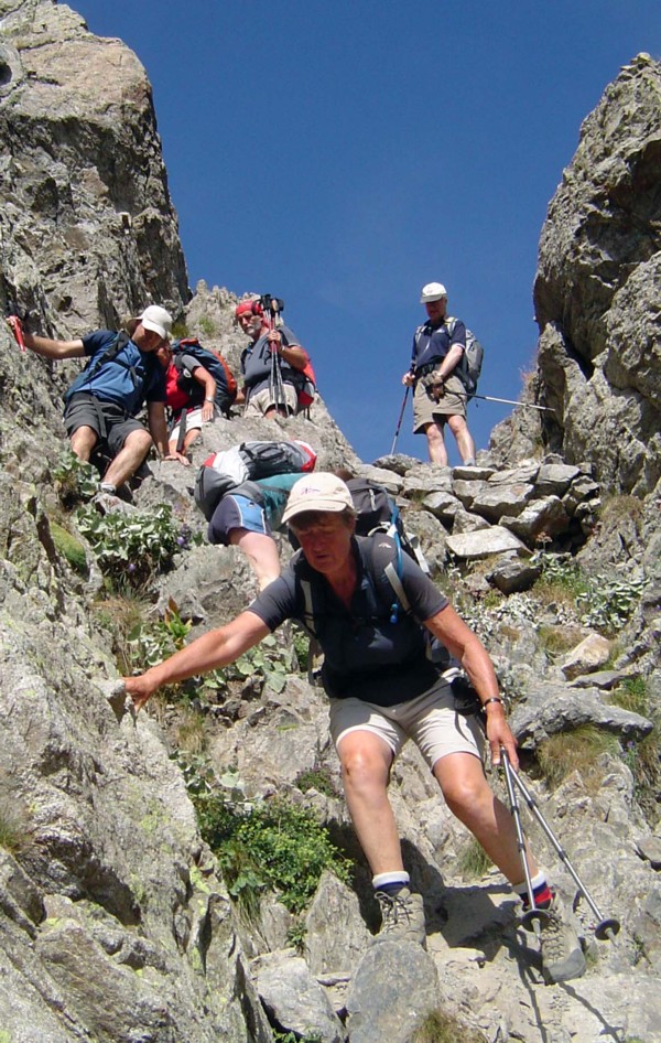 Top row L>R - scrambling up to Pas de Mont-Colomb : descent from Pas de Mont-Colomb : male bouquetin : Lac Vert near Refuge de Valmasque : Vallée des Merveilles